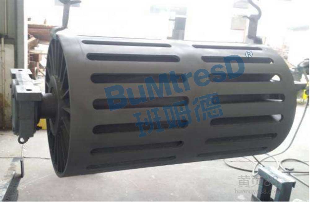 滾筒組由滾筒軸、軸承座、輪轂、輻板、筒殼部分組成。有的滾筒還有輪轂和滾筒軸的連接件、輪轂和輻板的連接件。